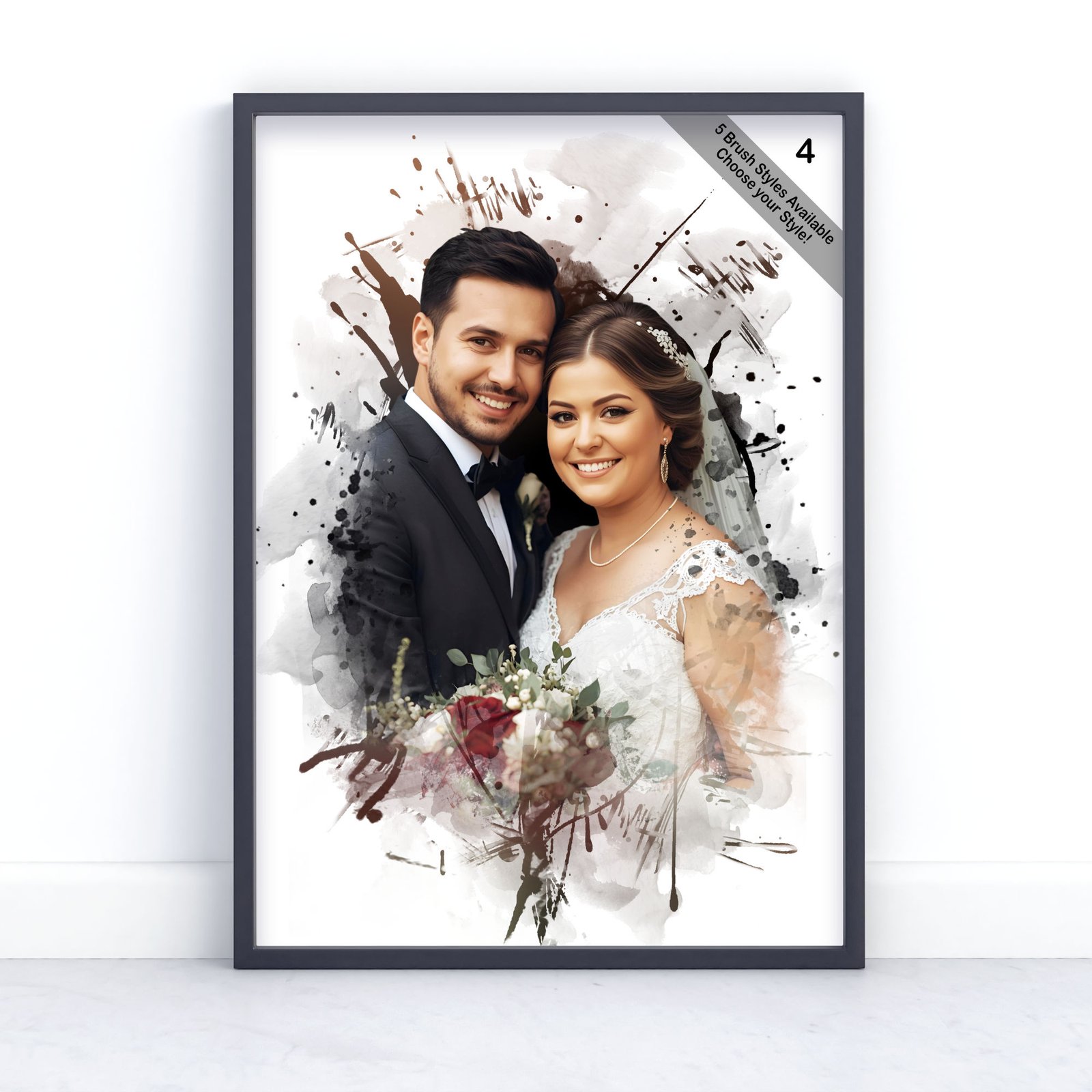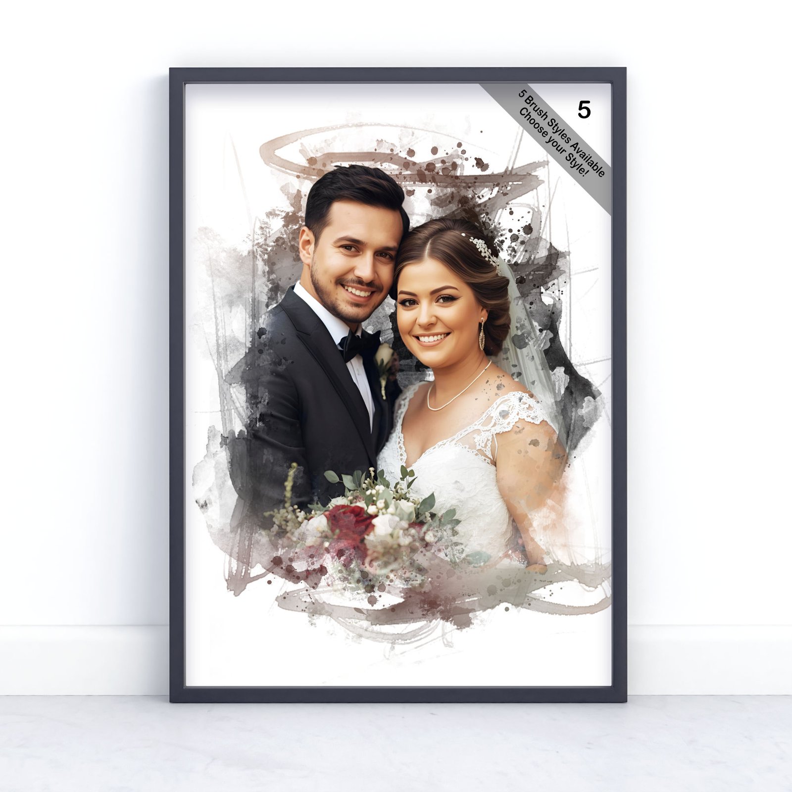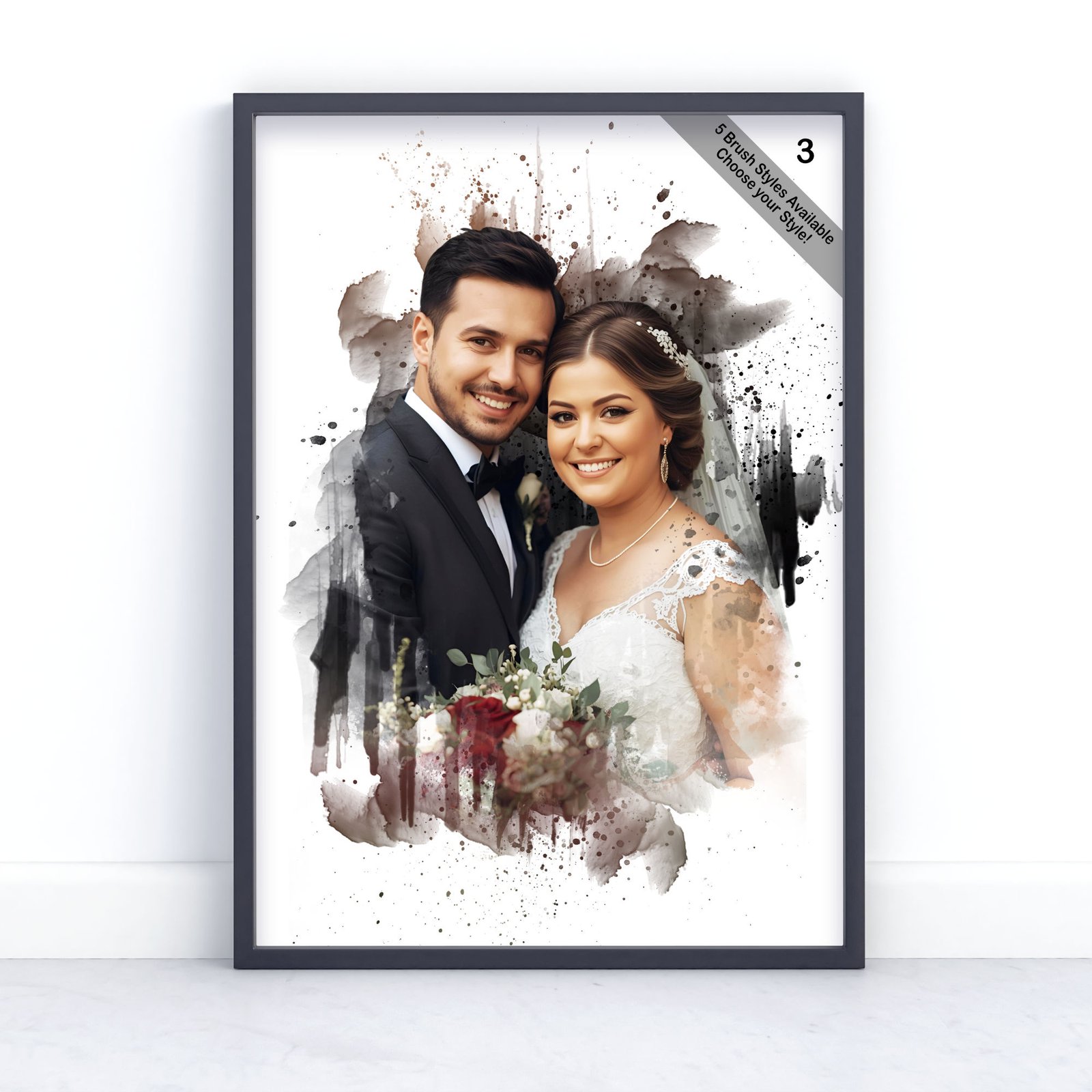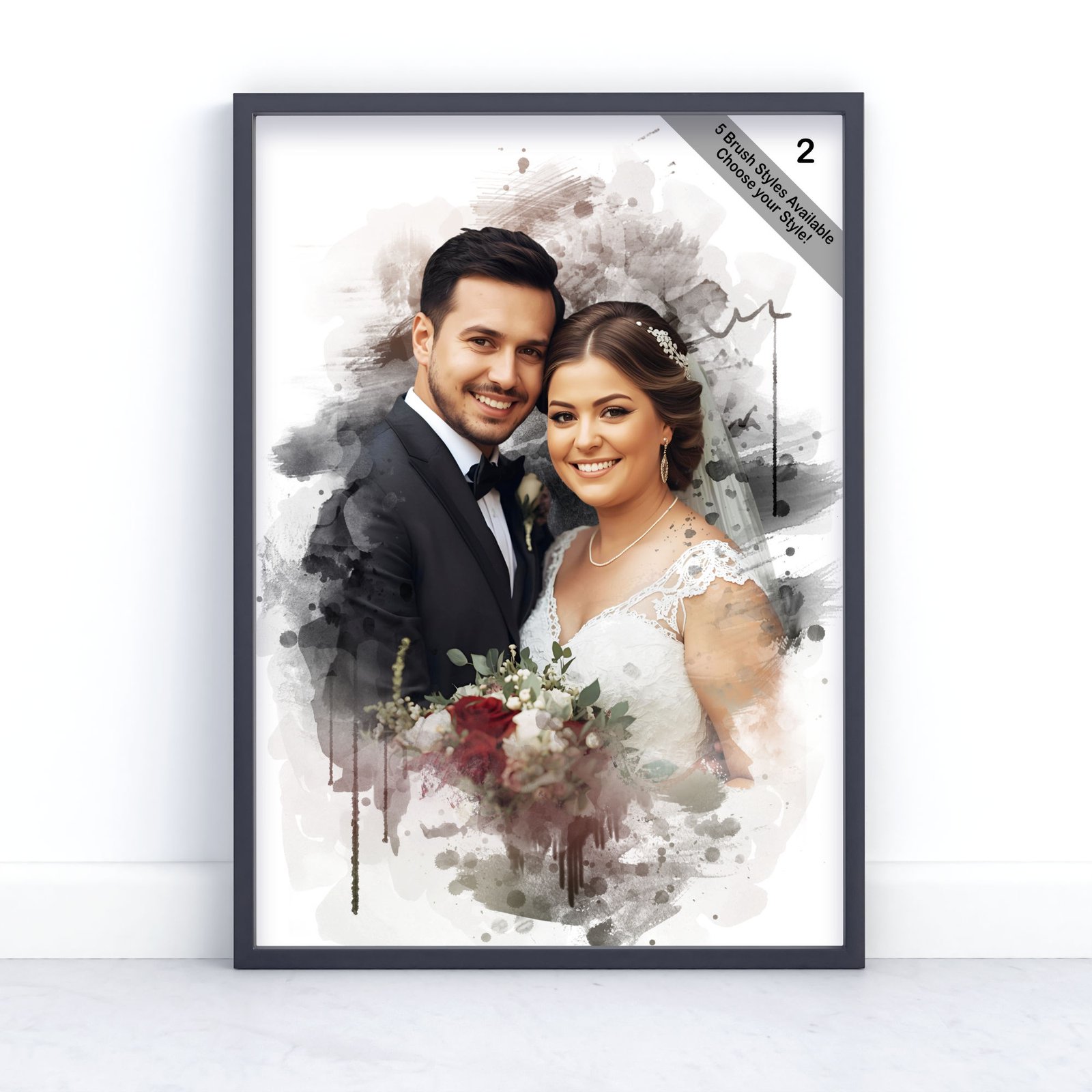 Custom Watercolour Wedding Portrait from Photo | Personalised Wedding Keepsake | Design Set 6