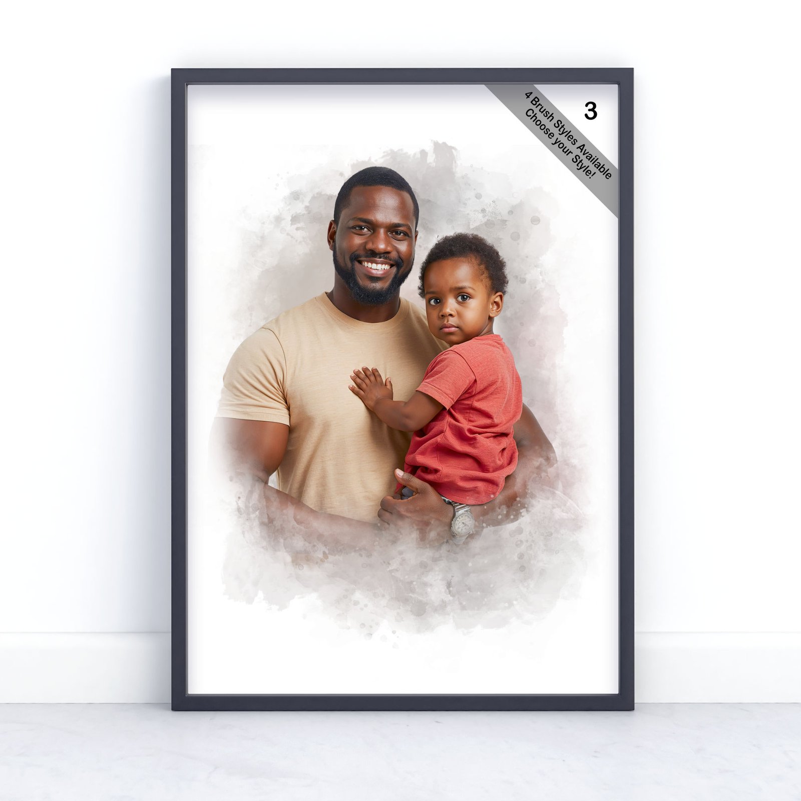Father and Child Portrait | Custom Watercolour from Photo | Design Set 3