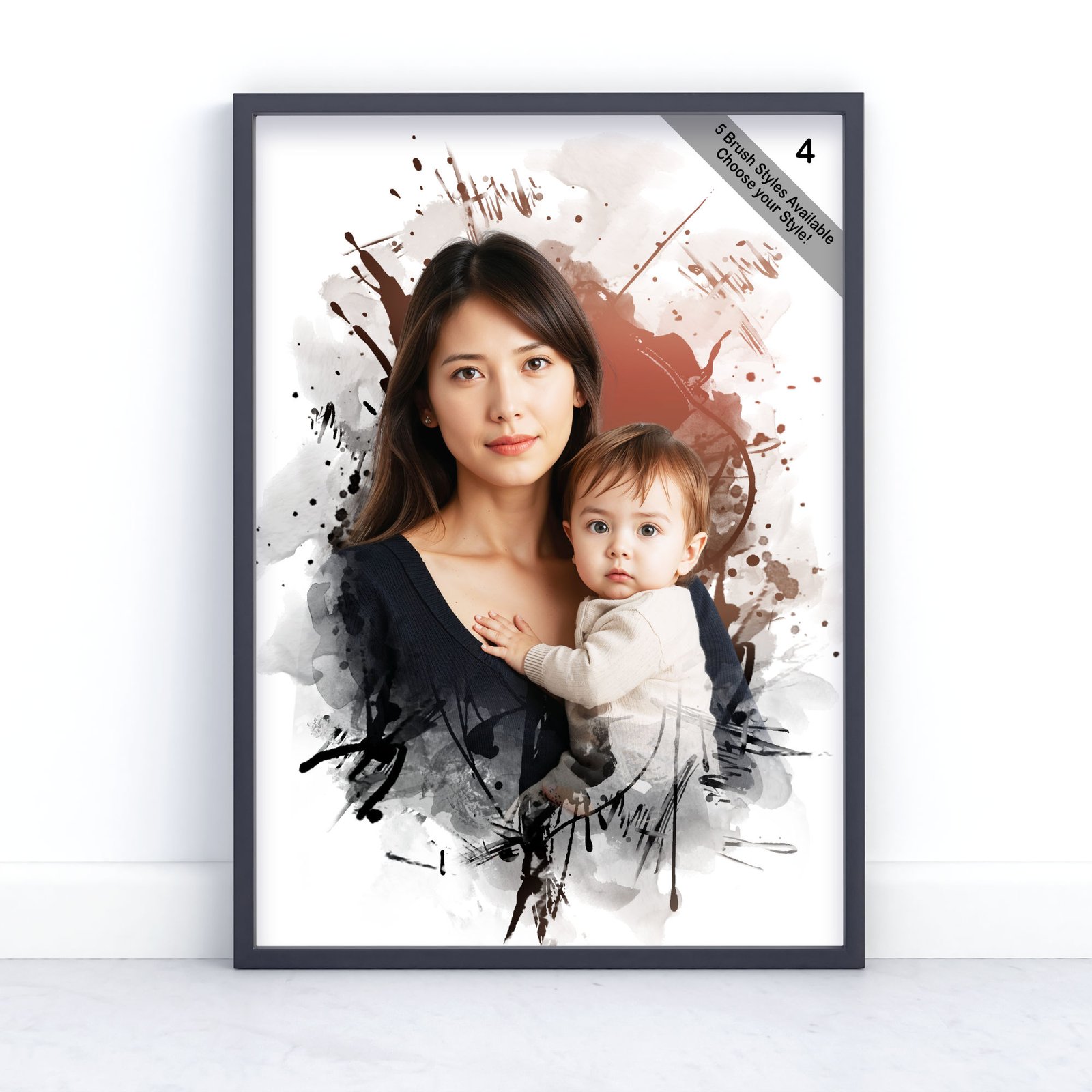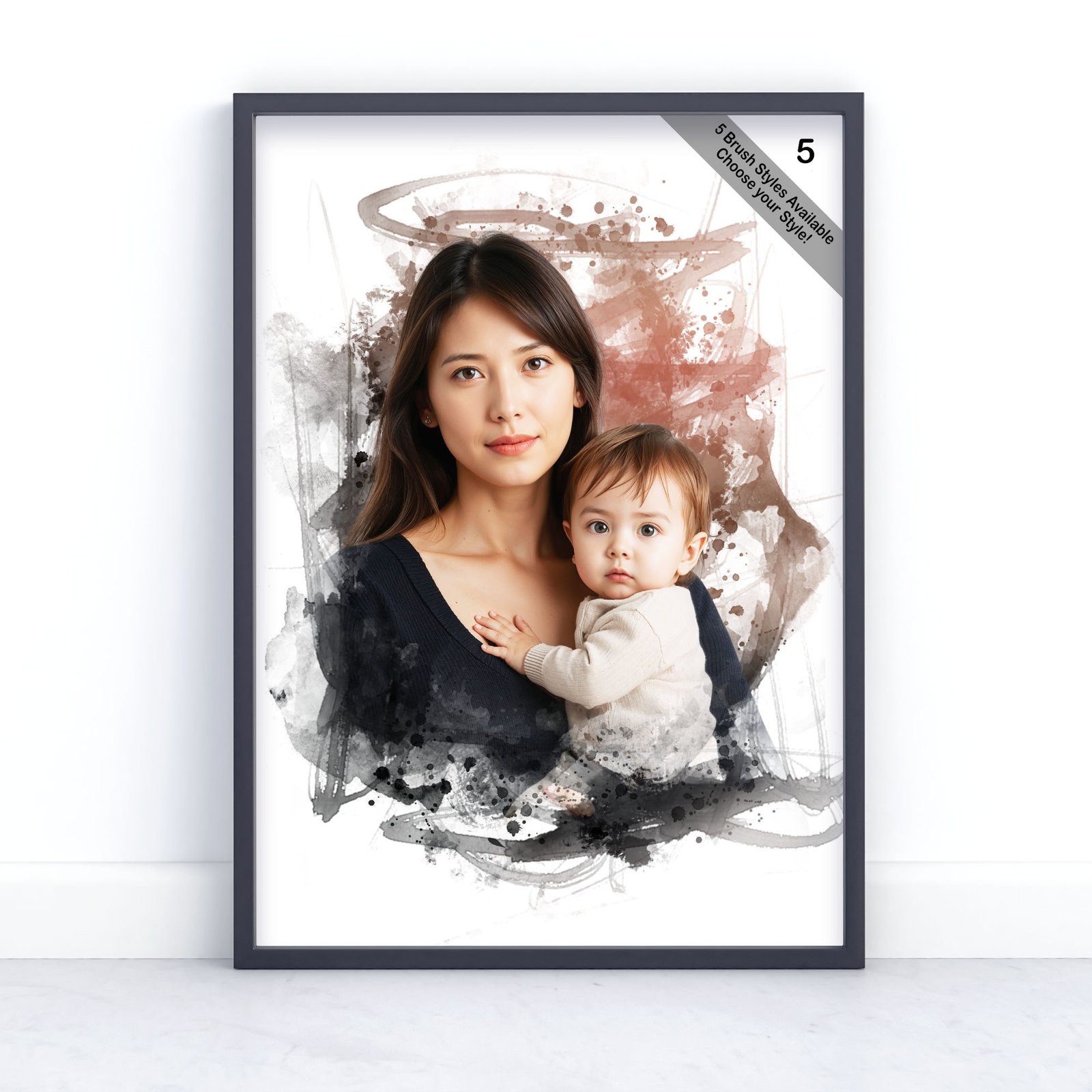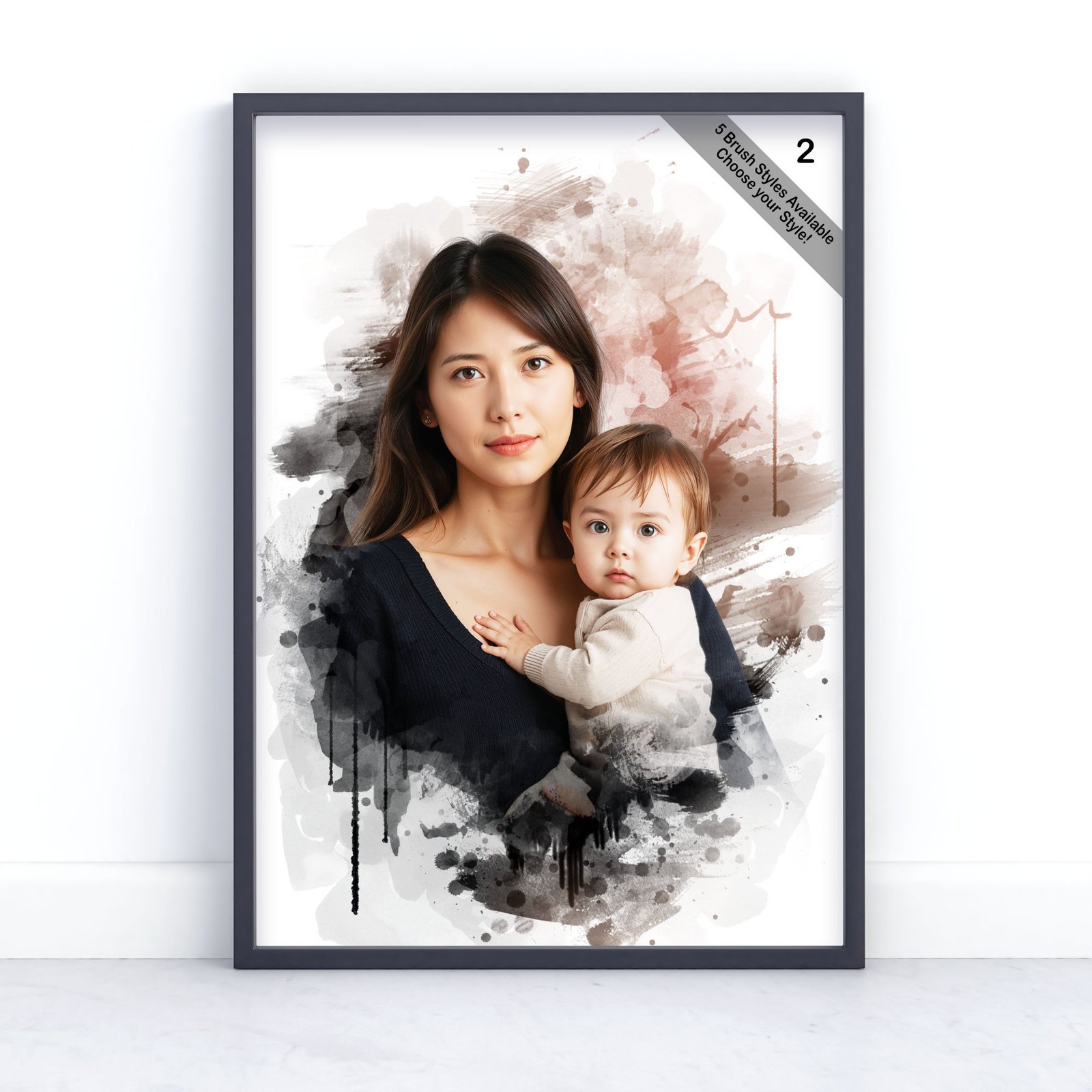 Mother and Child Portrait | Custom Watercolour from Photo | Design Set 6