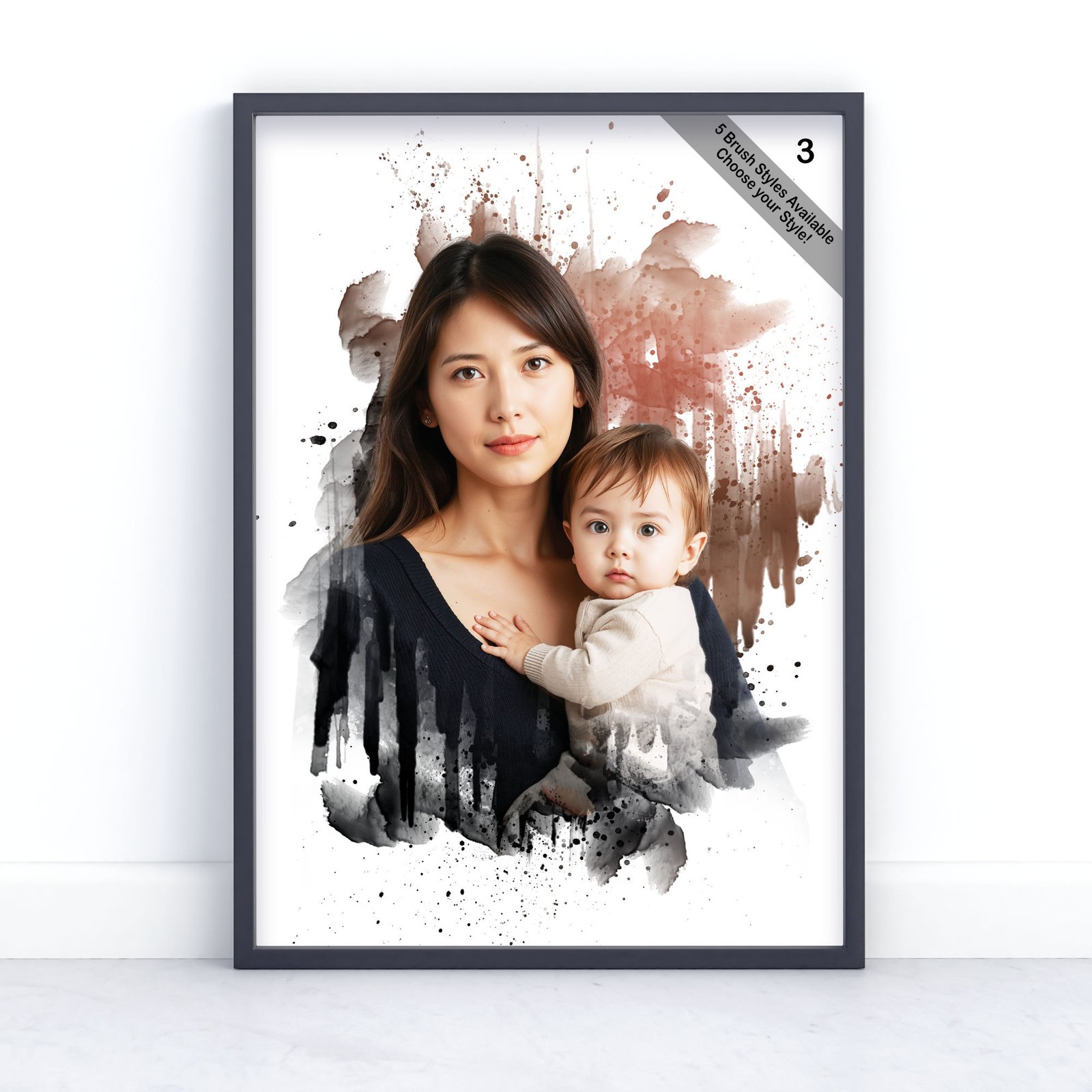 Each portrait is carefully created in a soft digital watercolour style, transforming your cherished memories into timeless wall art — perfect for gifts or your own home.