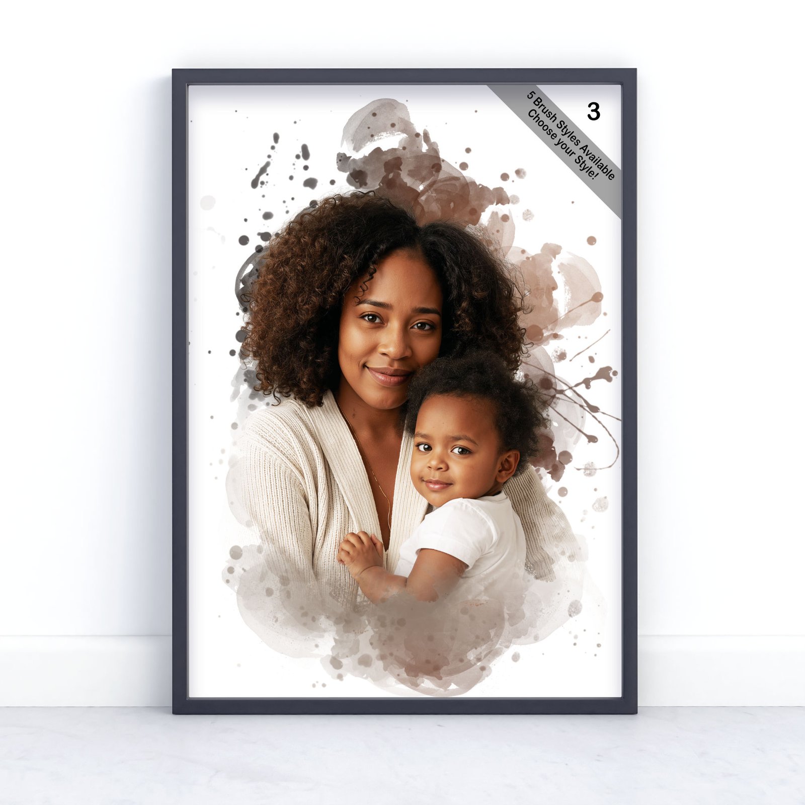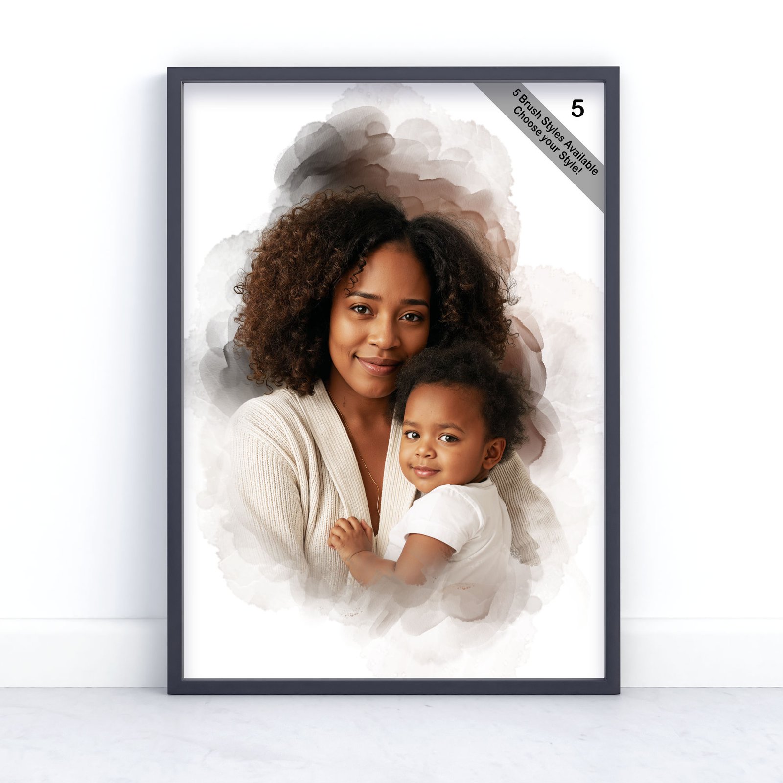 Each portrait is carefully created in a soft digital watercolour style, transforming your cherished memories into timeless wall art — perfect for gifts or your own home.